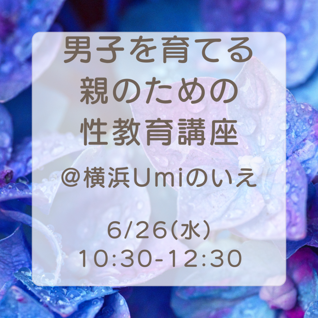 6/26(水)男子を育てる親のための性教育講座@Umiのいえ