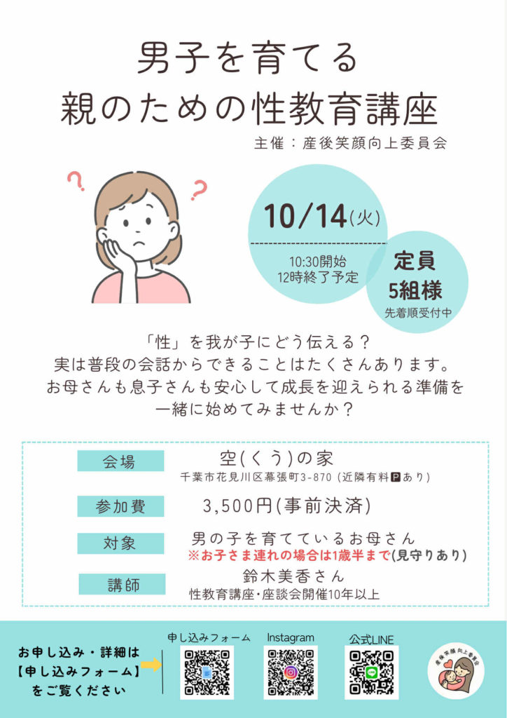 10/14(火)男子を育てる親のための性教育講座@千葉