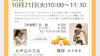 相鉄線沿いにある「おやこのひろばまんま」で 『抱っことおんぶの体験会』 を行います 今回は 基本の抱っこをしてみよう! です ・ なんとなくしている抱っこ これでいいのかな? もう少し楽に、安全な抱っこってあるのかな? … 続きを読む 2025/10/21_抱っことおんぶの体験会@横浜